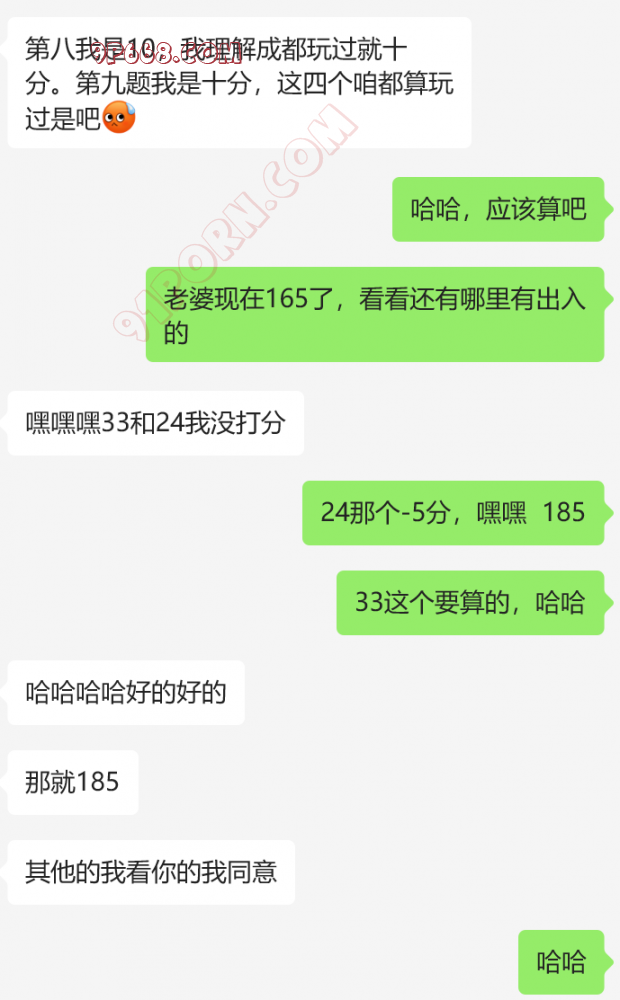 18.有过吞精加10分,被男朋友老公以外的人做过再加5分;15分