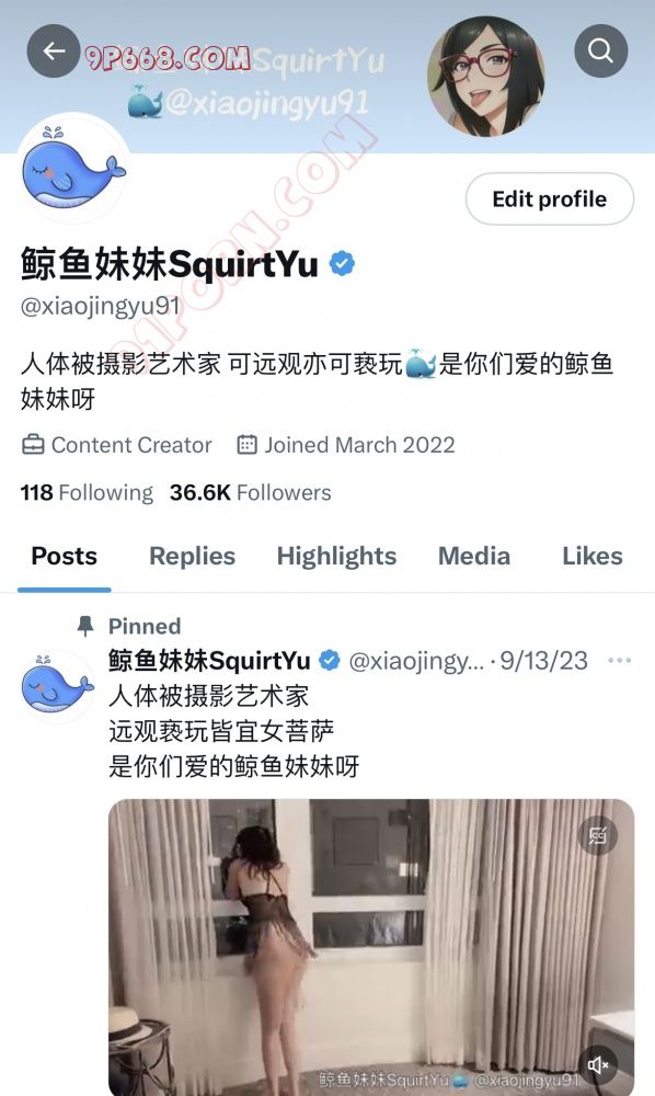 当然最反差的肯定是推特上的鲸鱼妹妹SquirtYu@xiaojingyu91啦
